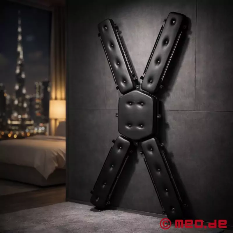 The comfort of this St. Andrew's Cross is impressive. The specially padded pads for arms and upper body ensure a pleasant experience, even during extended use. The sturdy construction of steel and wood guarantees stability and durability, even under heavy strain.
