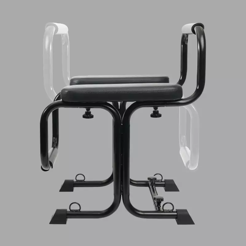 Το μεταλλικό πλαίσιο πατάει σε σταθερά πόδια από καουτσούκ και παραμένει σταθερά στη θέση του ακόμα και κατά τη διάρκεια εντατικής χρήσης. Με ικανότητα φόρτωσης έως 150 kg, το Bondage-Sex-Seat™ είναι ένα αξιόπιστο έπιπλο BDSM για σκηνές στις οποίες ο έλεγχος, η στάση και η προσβασιμότητα σε όλα τα στόμια του σώματος βρίσκονται στο επίκεντρο - από το μέσο περιορισμού του συντρόφου σας μέχρι τη διείσδυση, το στοματικό σεξ, το rimming και τη χρήση Strap-on.