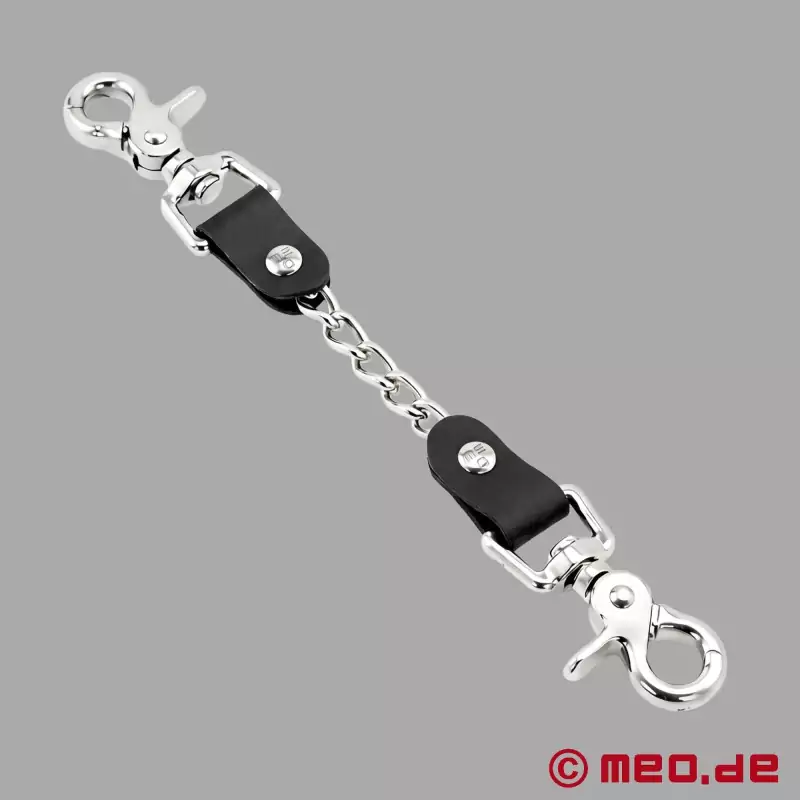 Το ConnectX™ της MEO® είναι το ιδανικό εξάρτημα για τη σύνδεση δύο μέσων περιορισμού μεταξύ τους γρήγορα, με ασφάλεια και ευελιξία. Είτε θέλετε να συνδέσετε χειροπέδες, χειροπέδες ποδιών ή ένα BDSM είτε να το χρησιμοποιήσετε ως αξεσουάρ για το κλασικό Hogtie bondage - το στιβαρό ConnectX™ εξασφαλίζει μια αξιόπιστη σύνδεση σε κάθε περίπτωση.