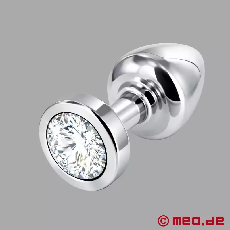 Anal Juwel Silver Diamente è un plug anale in acciaio cromato, liscio con estremità gioiello a forma di splendente diamante, capace di donare al vostro lato b un fascino ineguagliabile, oltre che prepararlo per il rapporto anale. Questo splendido utensile del piacere anale realizzato in liscio acciaio cromato, è progettato per un comodo e confortevole utilizzo, anche nel lungo periodo. Jewel vi permetterà di godere di una sensazione costante grazie al suo peso deciso mentre la gemma diamanti sulla maniglia del plug, aggiunge un po 'di brillantezza alla stimolazione anale, in completa sicurezza