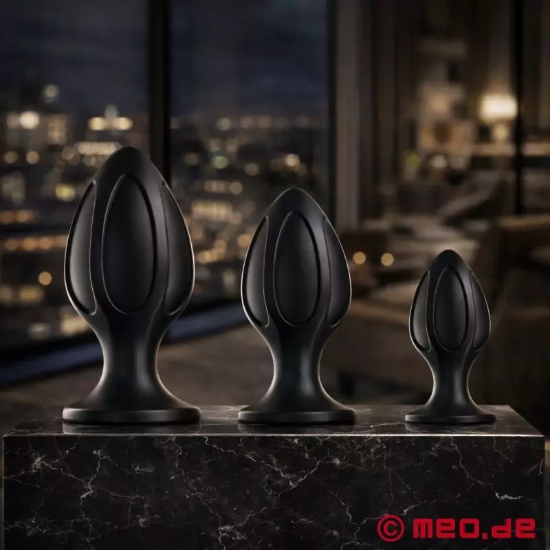 Το μικρότερο μέγεθος συνιστάται για αρχάριους. Ανάλογα με την εμπειρία, μπορείτε στη συνέχεια να μεταβείτε στο ενδιάμεσο μέγεθος και αργότερα στη μεγαλύτερη έκδοση. Κάθε butt plug διαθέτει μια ασφαλή βάση αναρρόφησης που μπορεί να χρησιμοποιηθεί για τη στερέωσή του σε λείες επιφάνειες, εάν απαιτείται - για σταθερό κράτημα και εύκολο χειρισμό.