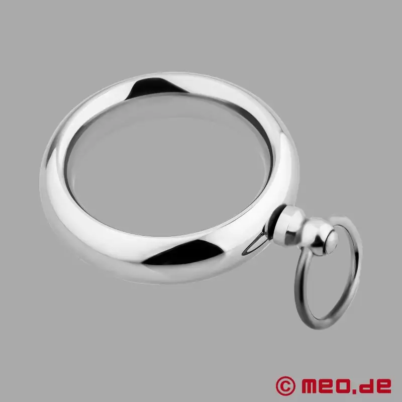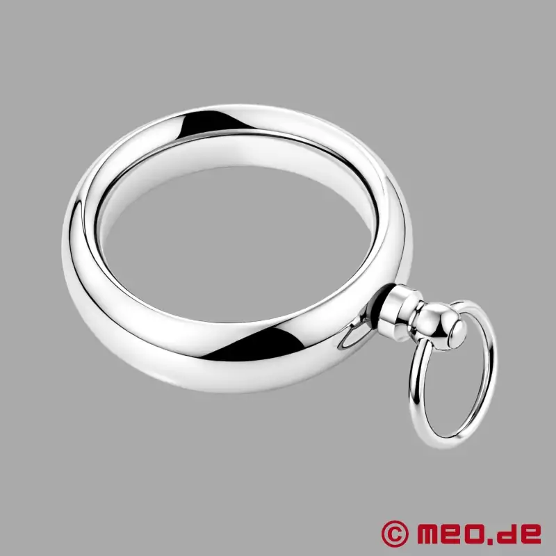 Ανεξάρτητα από το αν σε αυτό προσαρτάται λουρί σκύλου, λουρί οδηγού ή χειροπέδες - αυτό το δακτυλίδι πέους από ανοξείδωτο ατσάλι ανοίγει πολυάριθμες ερωτικές εφαρμογές. Ιδανικό για όποιον θέλει να κάνει τον έλεγχο ορατό και σαφώς αντιληπτό.