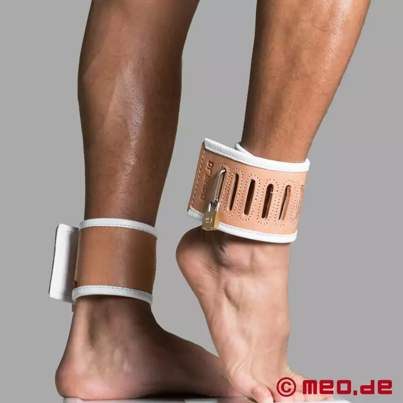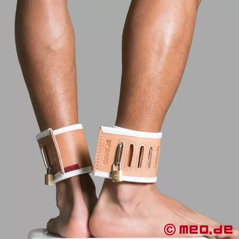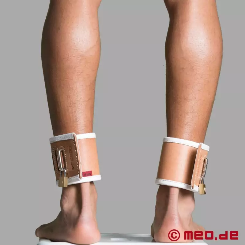 Η εφαρμογή των χειροπέδων ποδιών είναι καλά μελετημένη και φιλική προς το χρήστη. Τοποθετούνται εύκολα και στερεώνονται με ασφάλεια με μεταλλική μπάρα. Για πρόσθετη ασφάλεια, οι χειροπέδες ποδιών μπορούν να κλειδωθούν με ένα συμβατικό λουκέτο, ένα δεματικό καλώδιο ή την καινοτόμο ψηφιακή κλειδαριά χρόνου MEOBOND, η οποία επιτρέπει τον ελεγχόμενο από το χρόνο μέσο περιορισμού και ανεβάζει την εμπειρία του bondage σε ένα νέο επίπεδο.