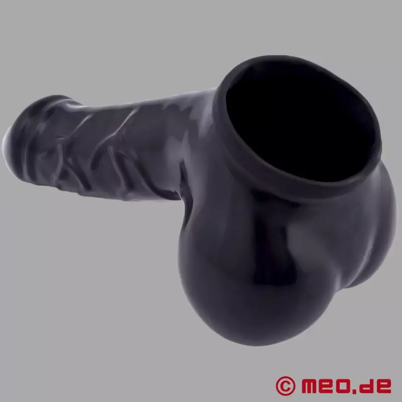Η ενισχυμένη είσοδος διευκολύνει την τοποθέτηση του μανικιού πέους. Στη συνέχεια, ο άξονας εφαρμόζει άνετα και προσαρμόζεται αξιόπιστα χάρη στην υψηλή ελαστικότητα του λατέξ, χωρίς να φαίνεται "σκληρός", αλλά με μια σαφώς αισθητή, σέξι στεγανότητα.