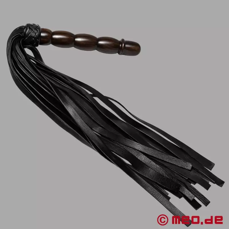 Οι προσεκτικά επεξεργασμένοι δερμάτινοι ιμάντες προσφέρουν ποικιλία χρήσεων - από απαλά, χαϊδευτικά αγγίγματα έως πιο έντονα χτυπήματα. Ο συνδυασμός της επιδέξια επεξεργασμένης, μαύρης ξύλινης λαβής και του διακοσμητικού δερμάτινου κόμπου όχι μόνο προσδίδει στο flogger BDSM "MoonlitMistress" μια κομψή εμφάνιση, αλλά εγγυάται επίσης την ανθεκτικότητα και τη στιβαρότητά του.