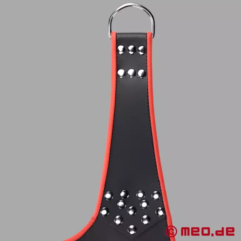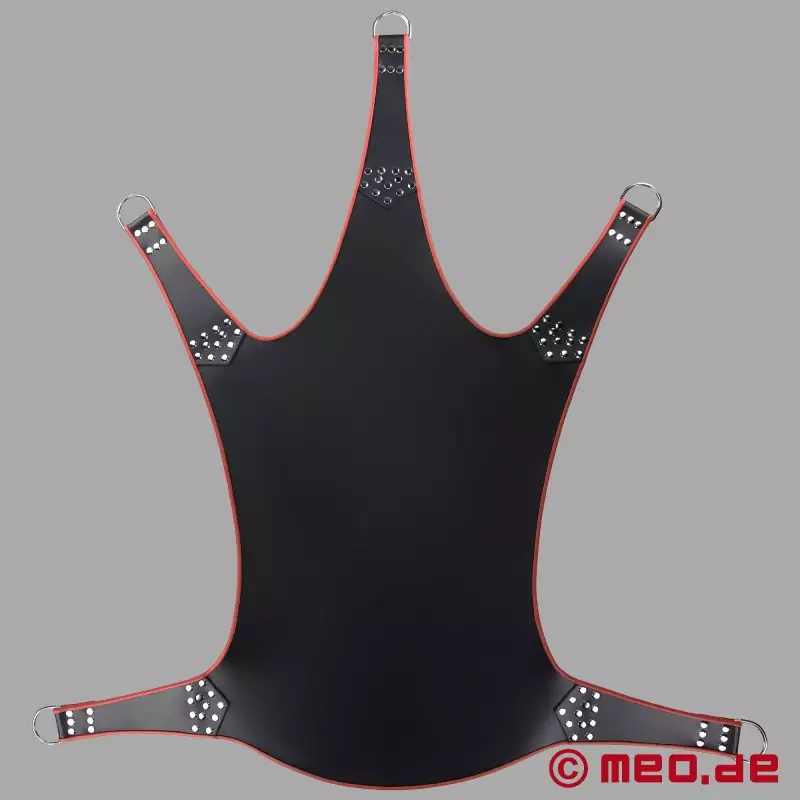 Αυτό το κλασικό sling με τις περίτεχνες λεπτομέρειες είναι ένα από τα πιο δημοφιλή μοντέλα μας. Με 5 σημεία πρόσδεσης, ο υψηλής ποιότητας sling είναι κατασκευασμένος από το καλύτερο δέρμα και διαθέτει ανθεκτικές κρίκους D για ανάρτηση κάτω από το ταβάνι ή στο πλαίσιο του sling μας. Κολλημένο πολλές φορές με πριτσίνια από ανοξείδωτο ατσάλι και άριστα φινιρισμένο για να σας εγγυάται την ασφάλεια που χρειάζεστε κατά τη διάρκεια του σεξ στο sling.