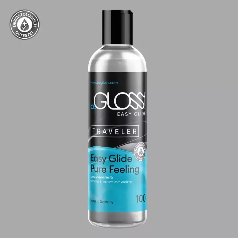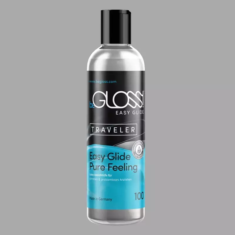 το beGLOSS® Easy Glide™ φροντίζει τα ρούχα από λατέξ και εξασφαλίζει άριστες ιδιότητες ολίσθησης, ακόμη και με έντονη τριχοφυΐα. Το δημοφιλές προϊόν συμβάλλει στην προστασία του λατέξ από την υπερβολική διάταση και το σκίσιμο και επιτρέπει το γρήγορο και εύκολο ντύσιμο και απογύμνωμα με μια σέξι "αίσθηση λατέξ".