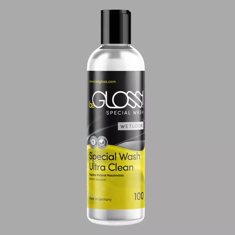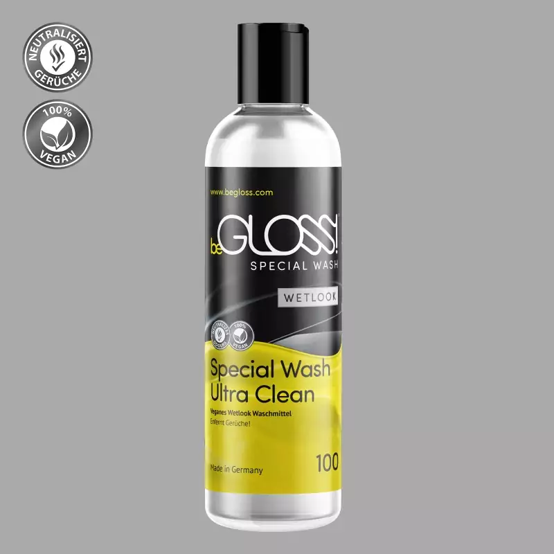 Τα σέξι ρούχα με υγρή εμφάνιση απαιτούν ειδικό καθαρισμό. beGLOSS® Special Wash™ είναι ένα ειδικό καθαριστικό που είναι ιδανικό για αυτό. Αφαιρεί απαλά, γρήγορα και αποτελεσματικά τη βρωμιά και τις δυσάρεστες οσμές και υποστηρίζει τη φροντίδα των wet-look ρούχων και αξεσουάρ. Βοηθά επίσης στη διατήρηση της ελαστικότητας του υλικού και στην προστασία του από το σπάσιμο. Κατασκευάζεται στη Γερμανία.