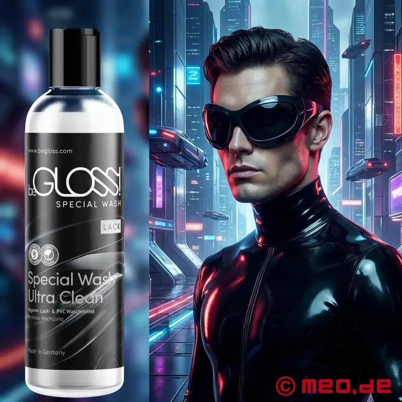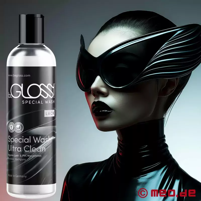 το beGLOSS® Special Wash™ είναι ένα vegan καθαριστικό μέσο για εσώρουχα από βινύλιο, PVC και με εμφάνιση βινυλίου. Αφαιρεί απαλά, γρήγορα και αποτελεσματικά τους ρύπους και τις δυσάρεστες οσμές, υποστηρίζει τη φροντίδα των ερωτικών ενδυμάτων, των εσωρούχων, των εσωρούχων και των αξεσουάρ, συμβάλλει στη διατήρηση της ελαστικότητας του υλικού και μπορεί να προστατεύσει το υλικό από το ράγισμα. Κατασκευάζεται στη Γερμανία.