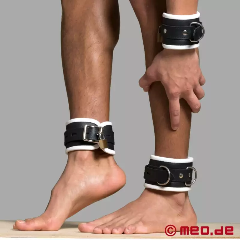 Με τους χειροπέδες ποδιών της MEO ® δεν είστε μόνο ασφαλείς, αλλά μπορείτε επίσης να απολαύσετε το μέσο περιορισμού με τον σύντροφό σας 100%. Όταν αγοράζετε χειροπέδες ποδιών, θα πρέπει να βεβαιωθείτε ότι οι χειροπέδες ποδιών που επιλέγετε ταιριάζουν και είναι ατομικά ρυθμιζόμενες σε μέγεθος! Αυτό αυξάνει την άνεση στη χρήση και σας εγγυάται πολυετή απόλαυση. Το υλικό των χειροπέδων ποδιών θα πρέπει να είναι ανθεκτικό και ανθεκτικό, όπως το υψηλής ποιότητας δέρμα που χρησιμοποιούμε. Για να διασφαλίσετε ότι θα παραμείνετε σε καλή διάθεση ακόμα και μετά τη δέσμευση, θα πρέπει επίσης να ακολουθήσετε τις οδηγίες φροντίδας μας, τις οποίες φυσικά συμπεριλαμβάνουμε με κάθε ζευγάρι χειροπέδων ποδιών.