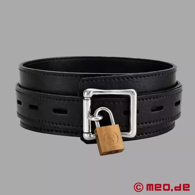 Το ασφαλιζόμενο δερμάτινο κολάρο DominateMe™ της MEO® είναι εξοπλισμένο με έναν προαιρετικό ιμάντα με άγκιστρο μύτης και επομένως είναι ιδιαίτερα κατάλληλο για εντατικά σενάρια δουλείας και κυριαρχίας. Ο συνδυασμός γνήσιου δέρματος υψηλής ποιότητας, ανοξείδωτου χάλυβα και πρώτης τάξεως κατασκευής καθώς και η στοχευμένη καθοδήγηση του κεφαλιού καθιστούν αυτό το αξεσουάρ BDSM μια ιδιαίτερα αποτελεσματική επιλογή για μια BDSM συνεδρία που χαρακτηρίζεται από έλεγχο, αφοσίωση και μια σαφή δυναμική εξουσίας.