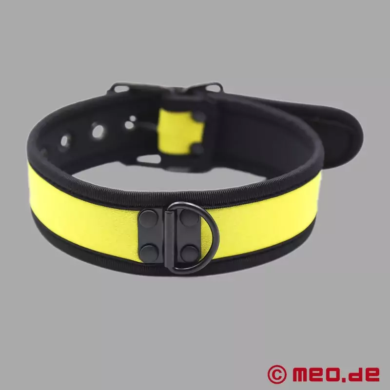 Το νεοπρένιο έχει καθιερωθεί εδώ και καιρό ως ένα πρακτικό και ελκυστικό υλικό στον τομέα του BDSM. Η βρωμιά, τα λιπαντικά, τα έλαια και ο ιδρώτας μπορούν να απομακρυνθούν εύκολα χωρίς να καταπονείται άσκοπα το υλικό. Επιπλέον, το νεοπρένιο δεν περιέχει 100% λατέξ και επομένως είναι επίσης πολύ κατάλληλο για πολλούς αλλεργικούς. Το λεπτό κολάρο σε μαύρο και κίτρινο χρώμα είναι ιδανικό για "ανθρώπινα κουτάβια" και όλους τους λάτρεις του BDSM που εκτιμούν την εντυπωσιακή εμφάνιση, την ευχάριστη άνεση στη χρήση και την πειστική σχέση τιμής-απόδοσης.