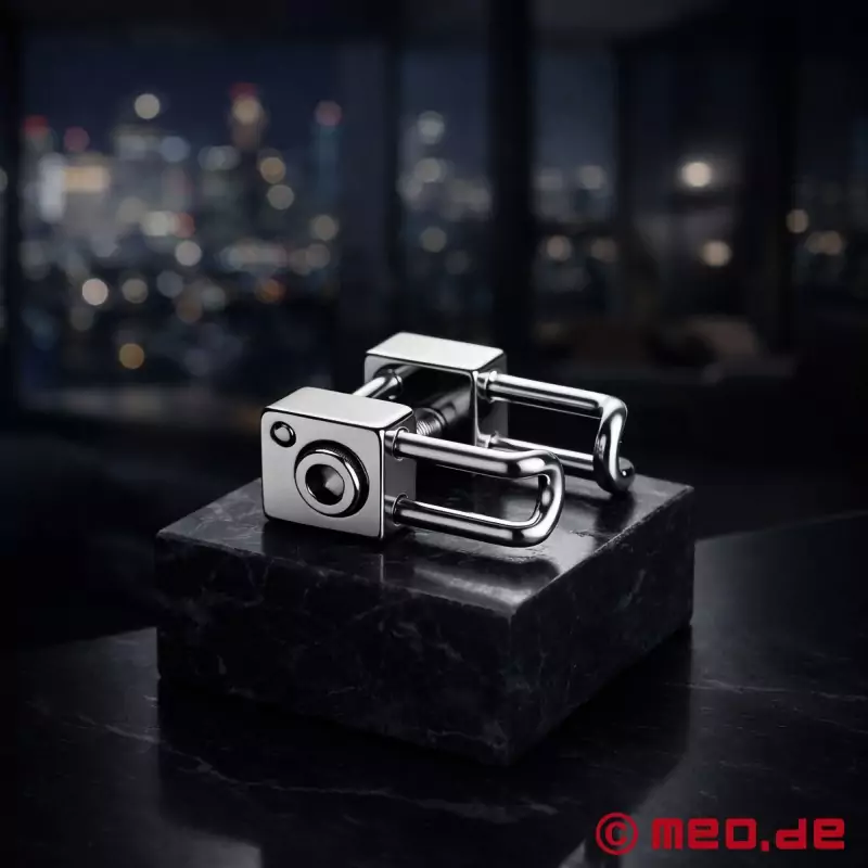 Un morsetto per naso, uno strumento di dominazione e dolce tortura sessuale, capace di enfatizzare tutte le sfumature fetish della vostra performance sessuale. Diversamente dalla maggior parte di queste pinze per naso, che offrono pressione attraverso molle, il design innovativo di questo Nose Shackle, consente di regolare la quantità di dolore misto al piacere che si vuole infliggere,su questa zona estremamente sensibile, aumentando o diminuendo la sua stretta, con una semplice rotazione della vite, posta al lato. Questo elegante pressa d'acciaio per naso è in grado di fornire un pizzico brutale di punizione o un sussurro di allettante piacere ad ogni stimolo e allentamento della piccola pressa. Ideato, progettato e realizzato per il naso, questo giocattolo è abbastanza grande anche per essere utilizzato sulle orecchie, sui capezzoli o sui genitali.