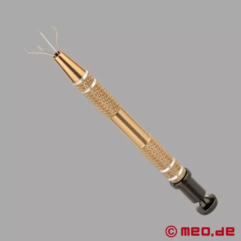 Το GripTease™ εντυπωσιάζει οπτικά με την καθαρή, τεχνική του εμφάνιση από ανοξείδωτο ατσάλι και ορείχαλκο σε χρυσό χρώμα. Η ανάγλυφη επιφάνεια εξασφαλίζει ευχάριστη αίσθηση και διευκολύνει τον χειρισμό. Ταυτόχρονα, η στιβαρή κατασκευή, τα ανθεκτικά υλικά και ο εύκολος καθαρισμός μετά τη χρήση αντιπροσωπεύουν τη λειτουργική ποιότητα αυτού του αξεσουάρ BDSM.