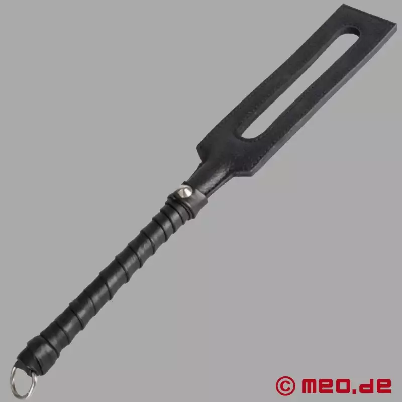 Το δερμάτινο paddle BDSM είναι εξαιρετικά ανθεκτικό, υψηλής ποιότητας και μακράς διάρκειας - ακόμη και σε βαριά χρήση. The rectangular recess on the paddle surface of the BDSM paddle serves to reduce air resistance and thus produces - stroke for stroke - painful results during spanking. Αυτό σημαίνει ότι μπορεί να επιτευχθεί ένα έντονο αποτέλεσμα με μικρή προσπάθεια.