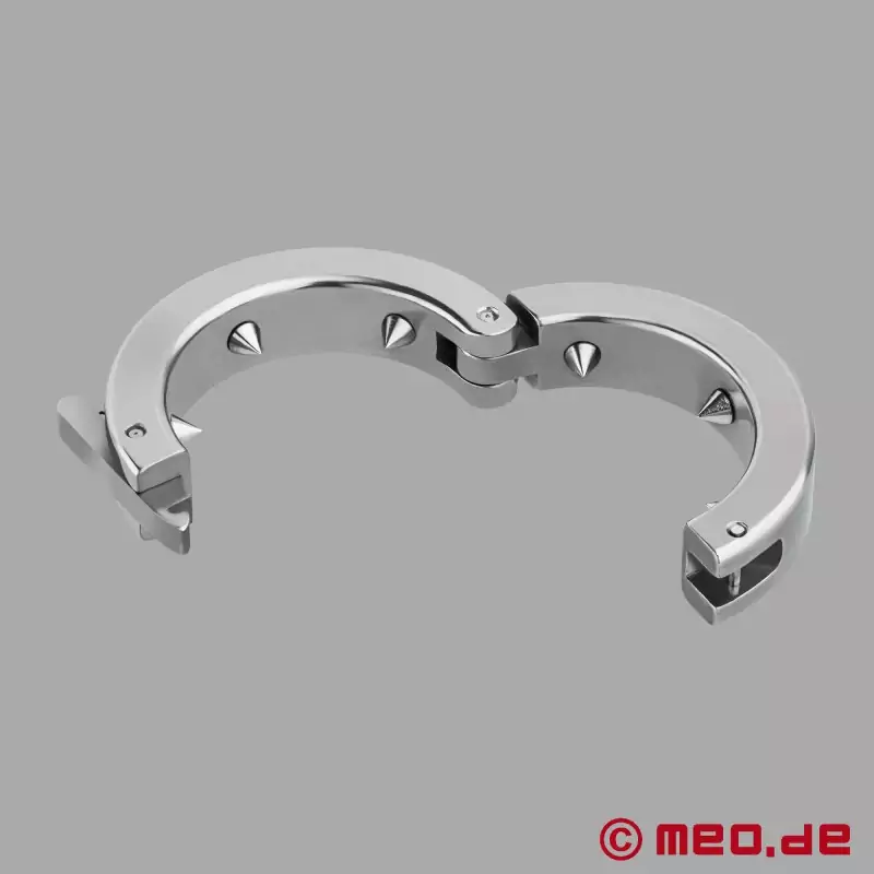 What faces you is a simple piece of metal – stainless steel – crafted into a hinged ring. A small hinged ring, with a clasp. Inside are six spikes, and not just something sticking out called a spike, I’m talking actually sharp pieces of steel.